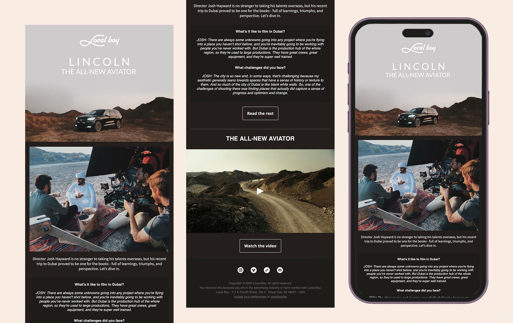 A showcase of email marketing campaigns I designed for the film production company, Local Boy.